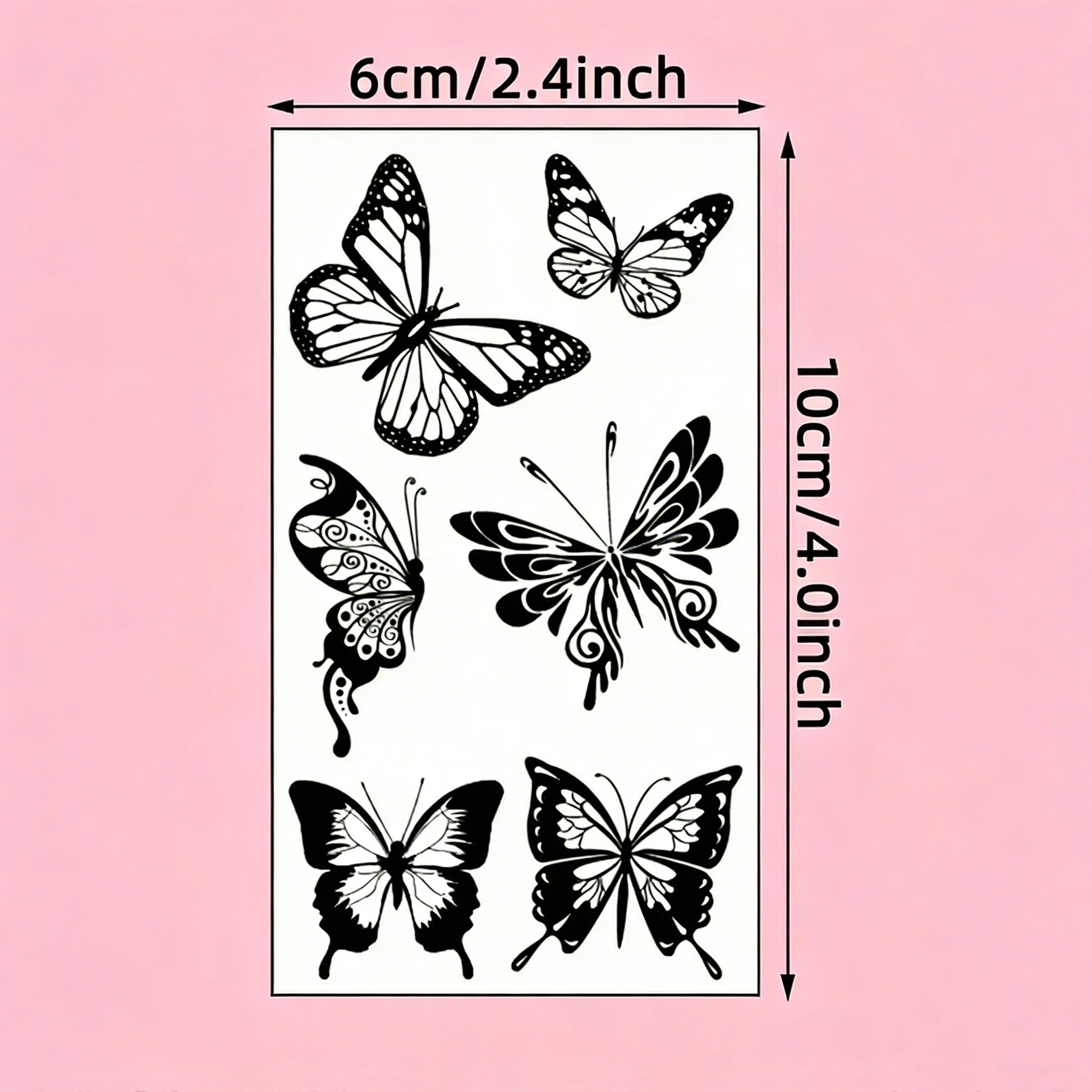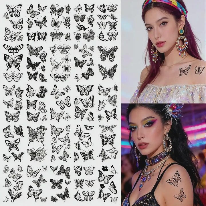30 temporary tattoo stickers with 163 black butterfly designs